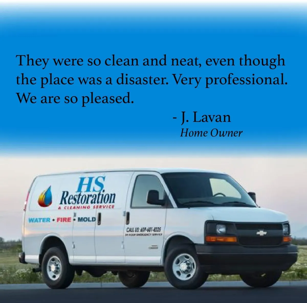 Billy at HS Restoration was helpful, honest, punctual, and didn’t make me feel like an idiot when talking me the process of fixing my basement leak. They were super quiet around my sleeping baby and were very courteous around my wife. Thanks for being so professional.